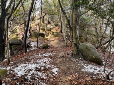山では雪が少し降ったようで、木の枝に積もってた雪が溶けて落ちてきてシャワー状態。