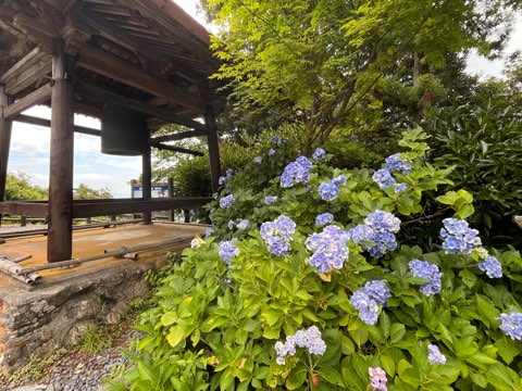 山頂にあるお寺に咲くアジサイ、、8月だけどアジサイだよね?