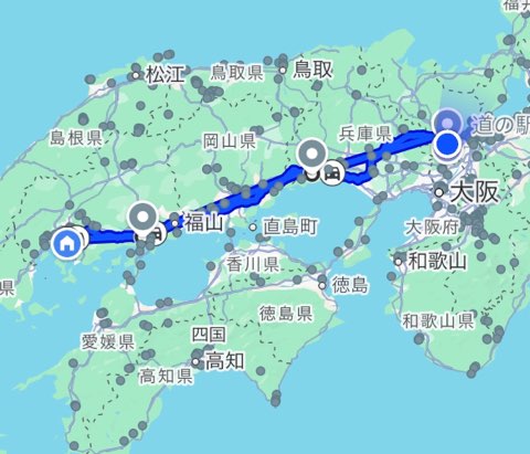昼過ぎにでて、休憩しながら下道を8時間かけて夜9時前にいつものお宿、道の駅ガレリア亀岡に到着。