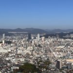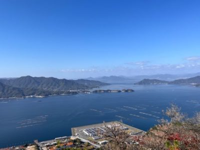 山頂の展望岩から広島湾、江田島、似島、宮島を眺めながら日向ぼっこ。