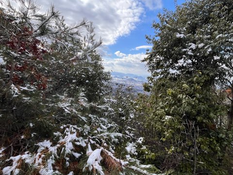 木の枝に残ってるの雪がちょっと綺麗な感じ。寒さも普段のだらけた体を引き締めてくれてるような、、