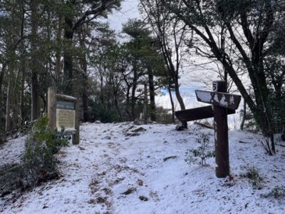 雪はうっすらで歩行の支障にならない程度。山頂で積雪3センチくらいかな。