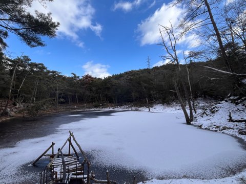 溜池も凍りついてたりと。まぁ冬らしい景気というやつで。