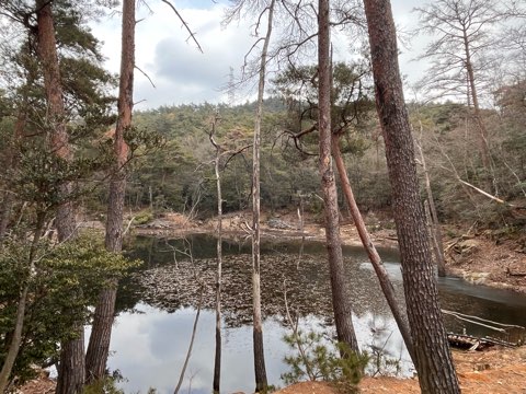 凍りそうで端っこだけ凍ってる感じの溜池でパシャリ。