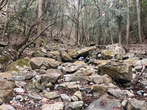 渇水期だからか飛び石をピョンピョンと飛んで渡ってた沢に水がほとんどない。