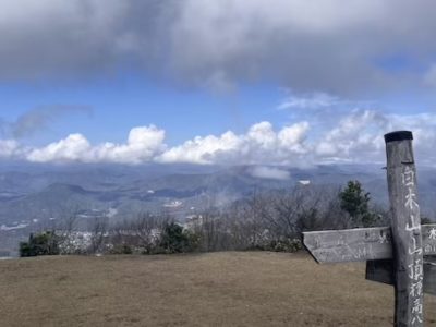 山頂から空を眺めると晴れの空と曇りの空がシノギあってる感じ。