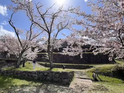 駐車場はほぼ満車状態でなんでかなと思ったらサクラが目当てのようで↓駐車場から10分ほど登って天守台跡へ。