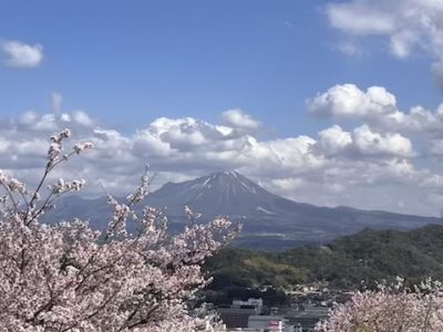 そして、天守台の桜越しに、さっき登った大山がクッキリと↓